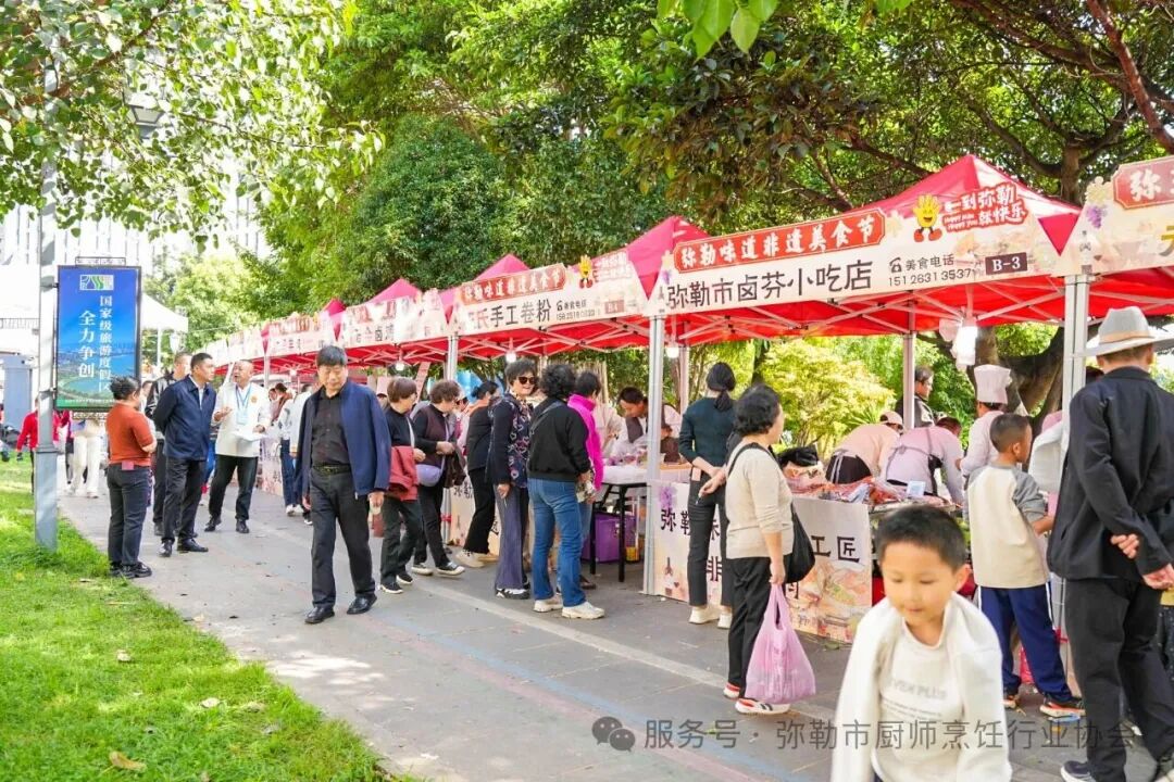 活动现场特设的非遗美食展示区,如同一部“可以吃的弥勒美食史”。